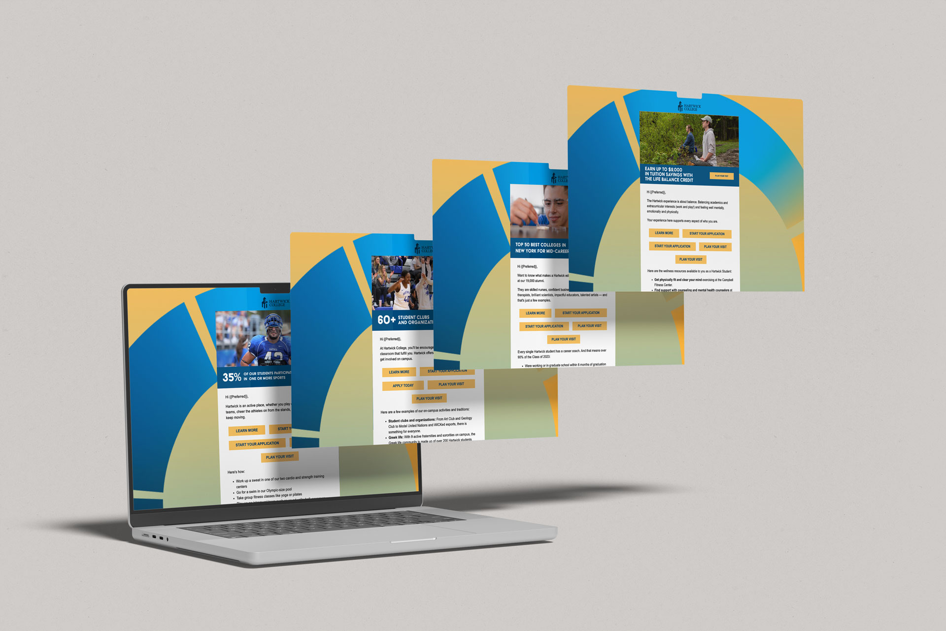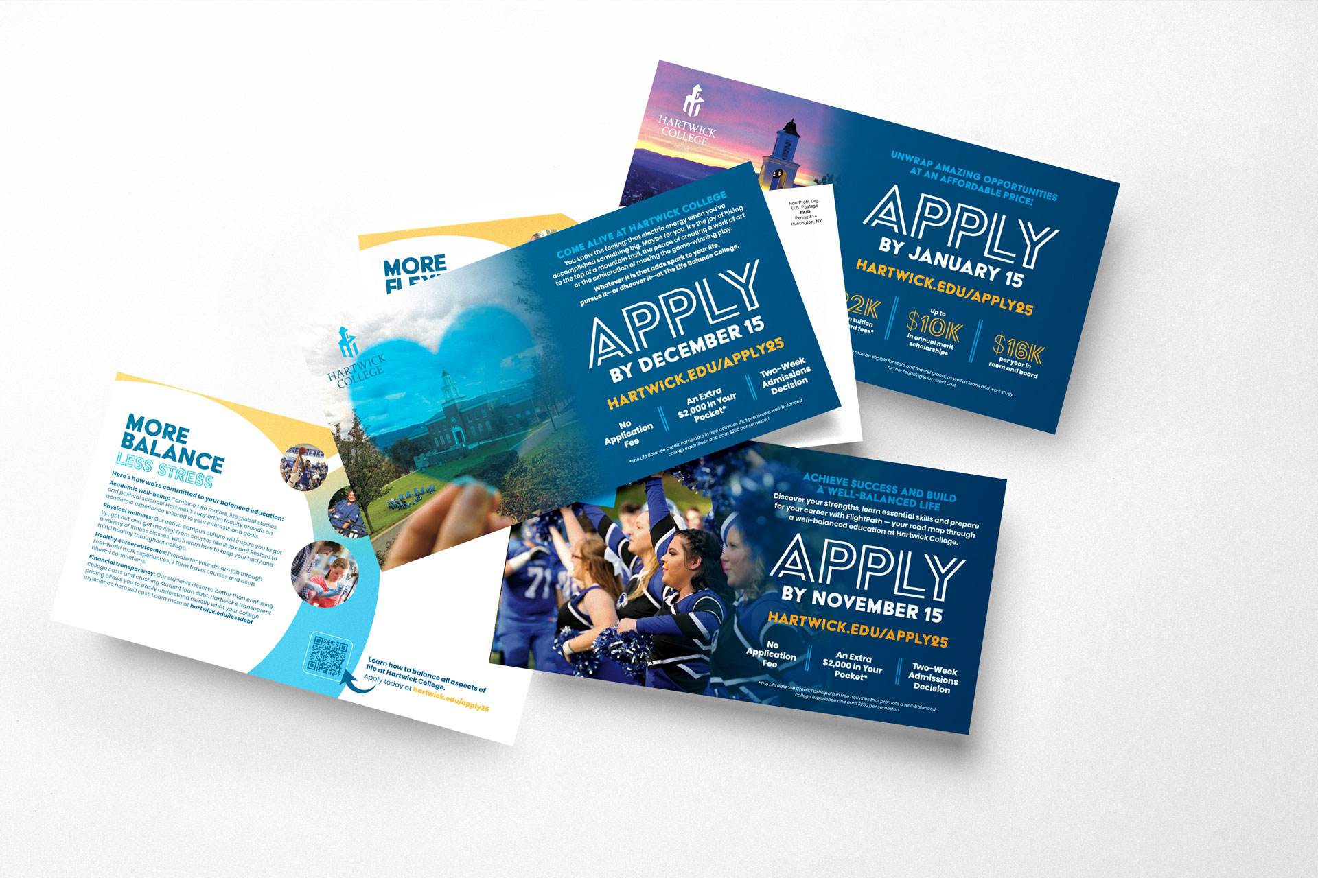By aligning our work with the College’s newly launched capital campaign, “Together We Soar,” and engaging key stakeholders such as the College President, Board of Trustees, current students, advancement, faculty, coaches, the Oneonta community, and more, we helped raise awareness, excitement, and campaign contributions. Not only that, but by deploying resources across a mix of traditional and digital channels, including postcards for senior search, website updates, social media engagement, and importantly, data-injected, personalized financial aid communications to existing students, we were able to help existing students understand the new tuition model and illustrate how the changes impacted their individual financial aid packages. This level of transparency and individual attention helped to reduce anxiety and build trust.